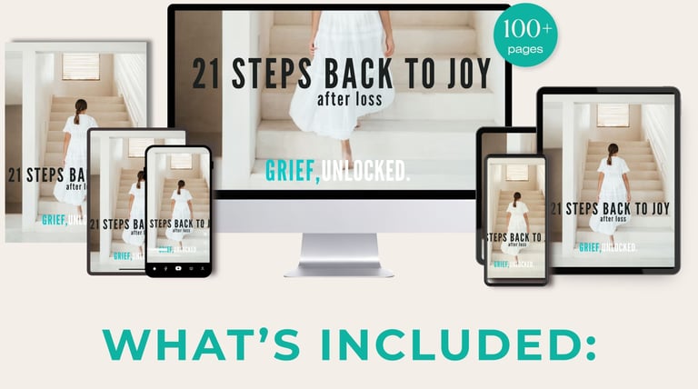 the full digital edition of Grief, Unlocked, a structured 21-step path back to joy after loss